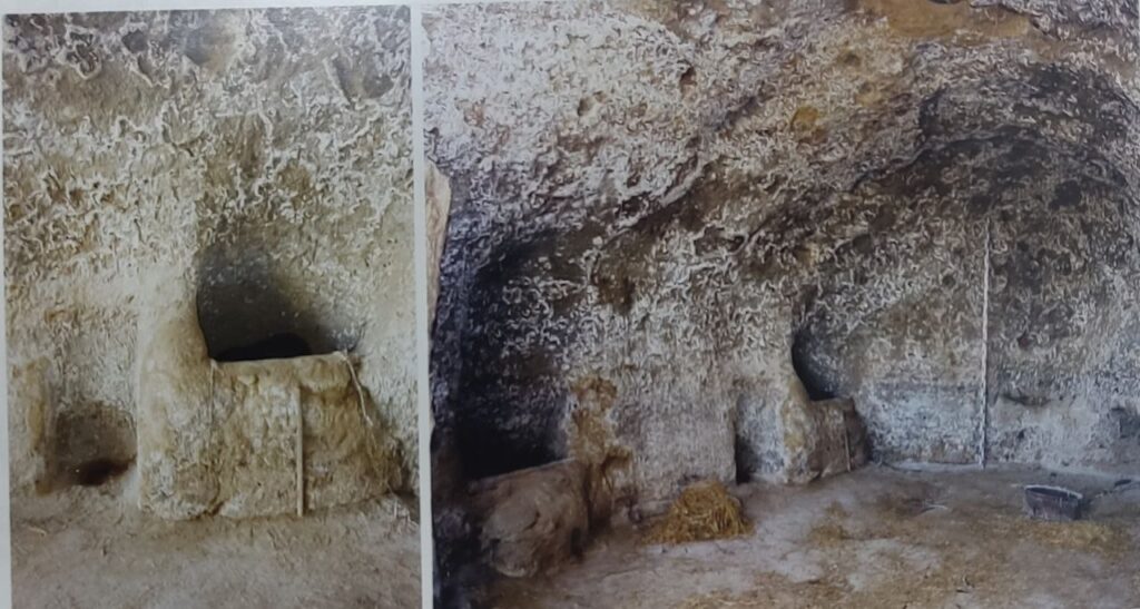 Дахмаҳои ғорӣ дар девораҳои ду соҳили сойи Осиёб, ки шохоби чапи рӯди Вахш аст, назди деҳаи Сангтуда воқеъ гардидаанд. Дар ҳудуди қобили дидан 4 даромадгоҳи ғор ва 4 мағора намоён аст. Аз рӯйи нақли сокинони маҳалӣ дар девораҳои соҳили сой 12 ғор мавҷуд буда, онҳо дар баландии гуногун аз сатҳи замин воқеанд; ғорҳои болоӣ 2-3 м ва ғорҳои поёнӣ бо умқи 12-13 м мебошанд. Санагузории муқаддамотӣ : ба қарни I пеш аз мелод ва қарни IV мелодӣ мансуб мебошанд.